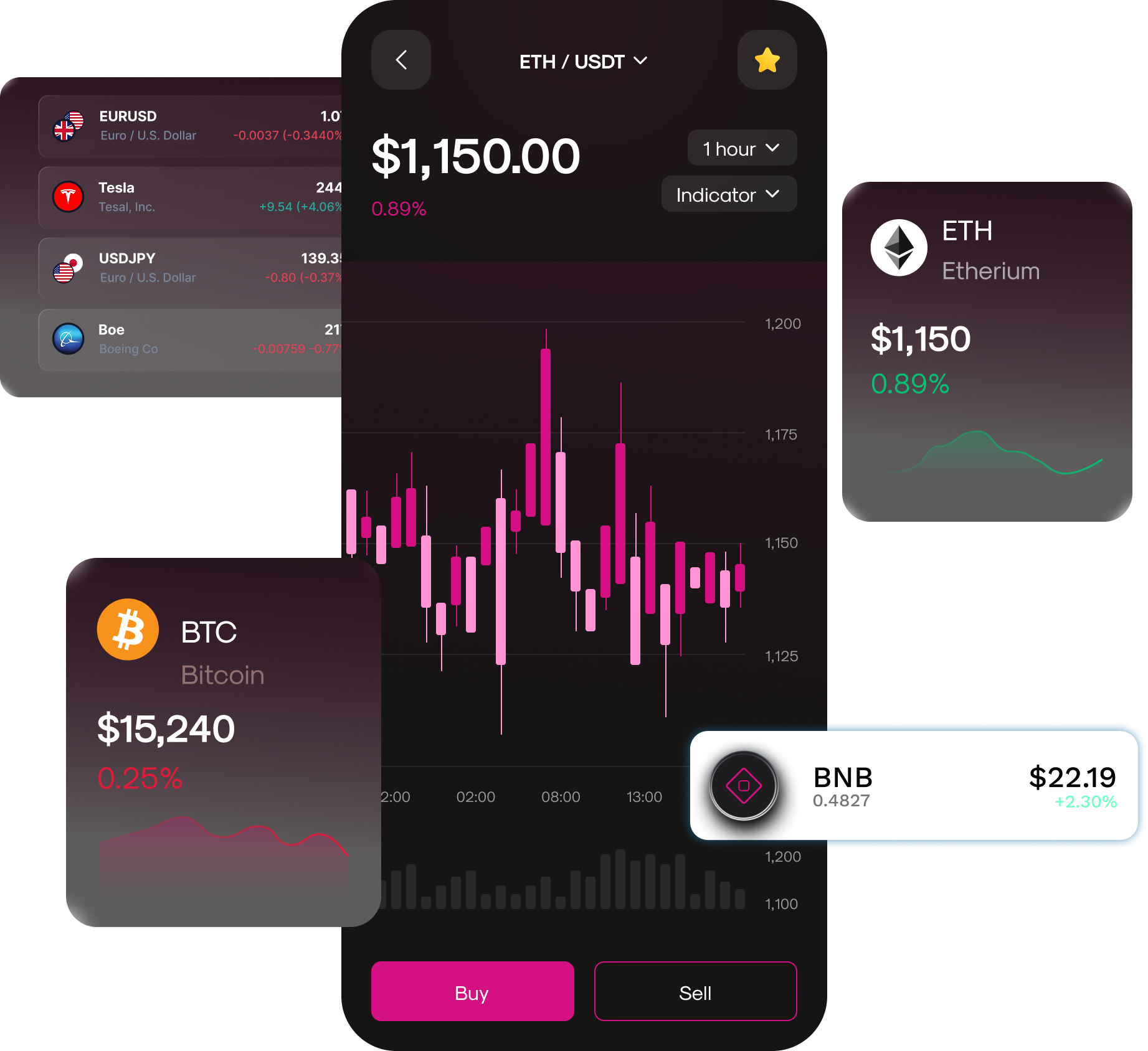 You can trade Forex, Stocks, Indices, Commodities (like Oil and Metals), and Futures through our platform.